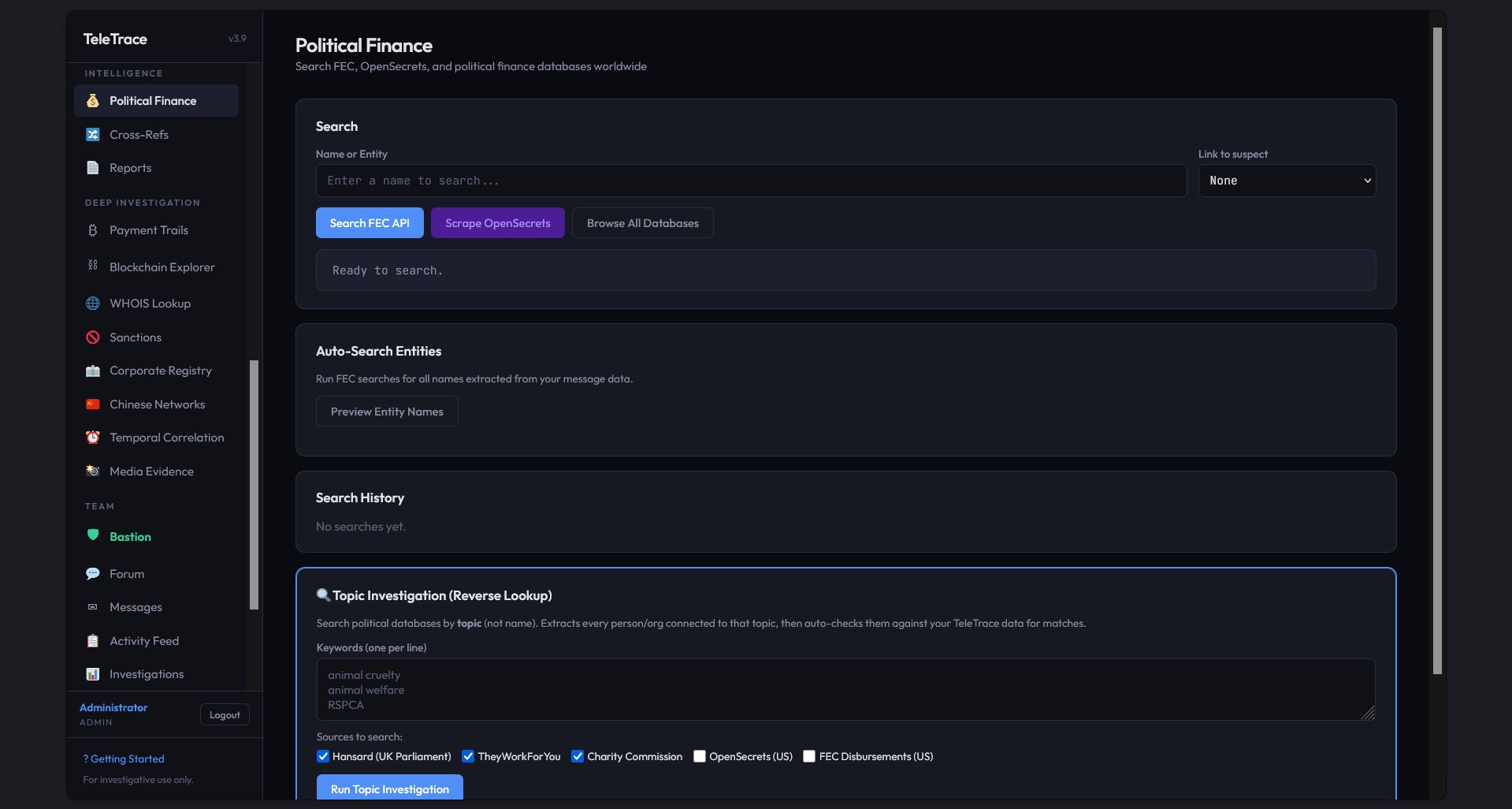 Telegram evidence collection and multi-platform OSINT suite. 30+ modules for message collection, network mapping, coded language detection, and team collaboration.